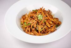 Лапша «Чжацзян» с фаршем и соусом из соевых бобов