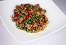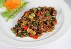 Жареные ломтики говядины с перцем чили
