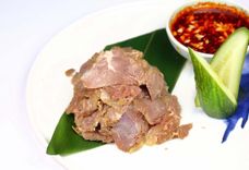 Отварная свинина с рубленым чесноком